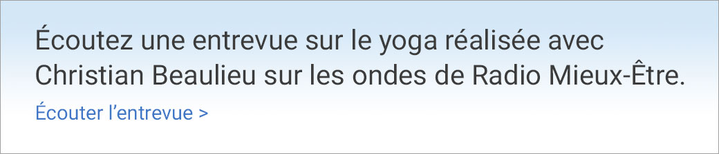 Christian Beaulieu enseigne le Yoga depuis 1983, il est membre de la Fédération Francophone de Yoga et de la Fédération Internationale de Yoga.